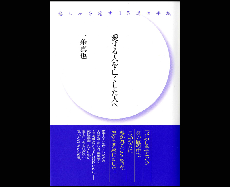 「一条様の著作はかねてより拝読させていただいており、『愛する人を亡くした人へ』では、その全体の斬新な文章構成、たいへん深い内容を読み手の心にそうようなやさしくわかりやすい文章で表現されていたことに感心させられ、いつか自分が文章を書くときがあったら、このような文章が書けたらと思っておりました」