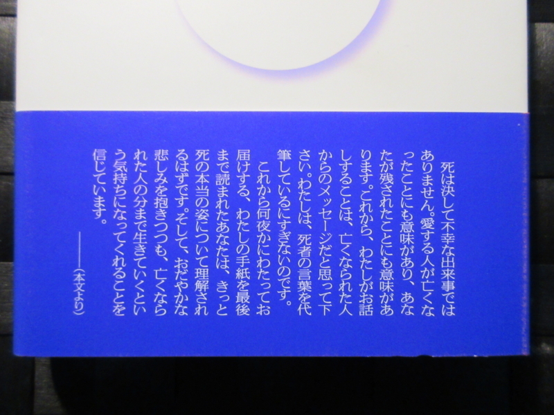 死は決して不幸な出来事ではありません。愛する人が亡くなったことにも意味があり、あなたが残されたことにも意味があります。15夜にわたってお届けする、わたしの手紙を最後まで読まれたあなたは、きっと死の正体について理解されるはずです。そして、おだやかな悲しみを抱きつつも、亡くなられた人のぶんまで生きていくという気持ちになってくれることを信じています。それは、何よりも、あなたの亡くした愛する人がもっとも願っていることなのです。