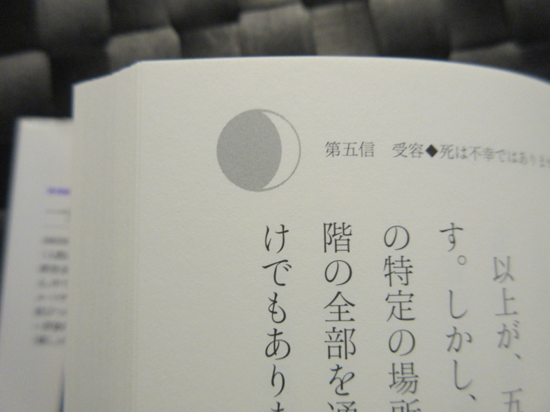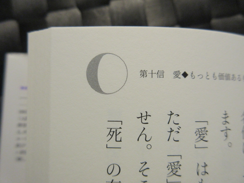 「もうお気づきだと思いますが、十五通の手紙は、月の満ち欠けに対応しています。最初の手紙は新月の、夜空が真っ暗なときにお渡ししました。そして、最後の手紙は満月の、やわらかな光が夜空を照らしているときにお渡ししました。しかし、きれいな満月も明日からはまた欠けはじめます。だんだん欠けていって、ついには消えてしまいます。そして、いつかまた、新たに生まれ、満月をめざして満ちてゆくのです。